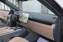 The passenger compartment has been kept in a simple, minimalist design. The high-set center tunnel has been detached from the cockpit, gaining an expanded lower storage compartment. The dashboard is dominated by only one, central touchscreen. It serves as both the clocks and the multimedia system with a diagonal of 15.6 inches.