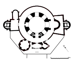 The cylindrical structure was built around 306 AD on the orders of the tetrarch Galerius, who was thought to have intended it to be his mausoleum. Its circular, centrally-planned structure resembles other structures such as Santa Costanza in Rome and is similarly topped by a dome. The structure was converted into a church in the late fourth century and an apsidal choir extension was added as well as a wide ambulatory around the perimeter.[4]