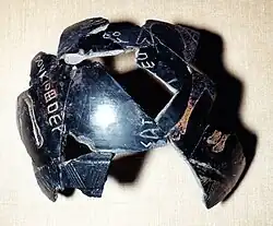 Writing marks the transition from protohistory to history.[7][8] The small olla from the tomb of the Giglio necropolis in Magliano, as well as the miniature flask[note 1] from Tomb III of the Poggio Sommavilla necropolis,[9] document language and culture in the Tiber valley:[10] a language that had adopted writing with an Euboic-Calcidian alphabet.[11] Numerous cores of baked clay (hut plasters, second half of the seventh century B.C.) and grave goods include ollae in brown impasto, decorated with incision and excision, other large ollae in brown impasto, while the presence of bucchero vessels, in the types of chalices and kantharoi, testifies to trade with the Etruscan area.[12][13][14]
