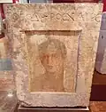 A Hellenistic Greek encaustic painting on a marble tombstone depicting the portrait of a young man named Theodoros, dated 1st century BC during the period of Roman Greece