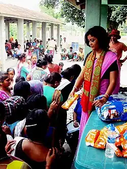 ![]() Borthakur distributing sanitary pads in Chirang district of Assam | |