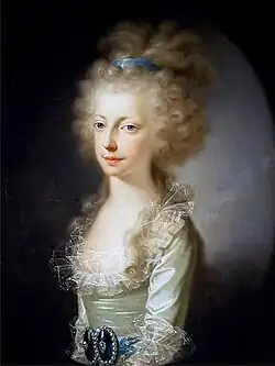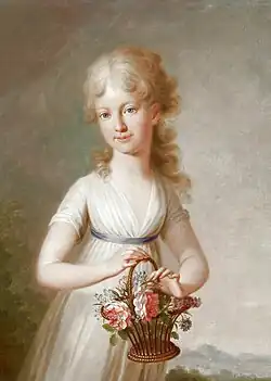 Maria Clementina of Austria (24 April 1777 – 15 November 1801) was an Austrian archduchess and the tenth child and third daughter of Leopold II, Holy Roman Emperor and Maria Luisa of Spain. In 1797, she married her double first cousin Prince Francis, Duke of Calabria, heir to the kingdoms of Naples and Sicily. She was modest, well educated and kind, becoming popular in her adoptive country.[2] Afflicted with frail health, she died of tuberculosis at 24. Her only surviving child was Princess Caroline, Duchess of Berry.