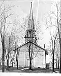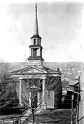 Photo 1856—1876 | Main Street across from Academy Street | Dedicated October 8, 1856.[10] | Dismantled and relocated in 1876–1877 | Dismantled and rebuilt at Forty Fort, PA, and rededicated 1877,[11] but destroyed by fire June 2, 1900.[12][13] |
