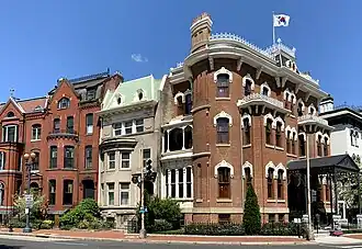 This style of architecture is popular in some residential neighborhoods in Washington, most notably Georgetown, Foxhall Village, Kalorama, and Mount Pleasant.