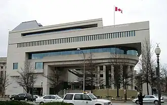 Postmodern architecture is a broadly defined architectural style that emphasizes the use of glass, large windows, and generally greater variety of form than Modernism allowed for. Because of the broad definition of this type of architecture, many buildings built in Washington, D.C., in the latter decades of the 20th century through recent years can be said to be Postmodern. Among these buildings are the headquarters of the International Finance Corporation near Foggy Bottom, the Embassy of Spain in the West End, the World Bank Group headquarters building located Downtown, and the Embassy of Canada near the Capitol.