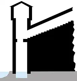 The tower varied in shape: square, rectangular (the tower in Cherven), circular, oval, triangular, horseshoe-shaped or with irregular shape. Depending on their position and functions they were: entrance, defense, edge or water towers. The later were towers-wells, located in the immediate vicinity of a river in such a way that their foundations soaked up water. The immense fortress Tsarevets in Tarnovo had such water towers. They could be reached by vertical walls from the main stronghold with secret galleries. They were extremely useful during long sieges. In the most difficult place to access in the fortress stood the citadel: a separate rampart in case the outer areas were overrun by the enemy. Examples of such citadels can be found in the castles of Shumen, Lovech, Cherven, Ohrid, Devol[2] and others. As an additional defense some castles had water-filled moats. A fine example of this is Baba Vida in Vidin.