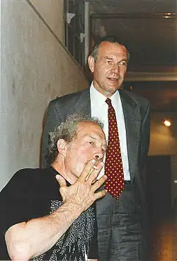 In April 1990 the Archive exhibited Sei lirici della poesia visuale internazionale (Six Lyrists of International Visual Poetry), including works by Alain Arias-Misson, Ugo Carrega, Carlfriedrich Claus, Ian Hamilton Finlay, Tom Phillips, and Shohachiro Takahashi.[10] The exhibition was then moved to the Cairoli College of the University of Pavia from 24 January to 7 February 1991, in collaboration with Marco Fraccaro.[11] The following exhibition was Poesia concreta in Brasile (Concrete Poetry in Brazil), featuring works by Brazilian poets Augusto and Haroldo de Campos, and Décio Pignatari, members of the Noigandres group.[11] The exhibition was opened on 21 March and lasted until 21 June 1991, then moved to the Palazzo Doria-Pamphili in Rome, in 1993 to the Museum of Contemporary Art in Marseille, to the Lyon Biennale and finally, in 1995, to the Accademia Carrara in Bergamo. In 1992 the ANS exhibited an anthology of the works of Martino Oberto, curated by Paula Mattoli and Giorgio Zanchetti and containing more than 40 artworks, documents, manuscripts and publications by the artist.[12]