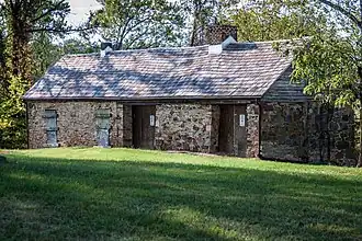 The Arcola Slave Quarters were built circa 1800 on the grounds of the Lewis plantation at Arcola in Loudoun County, Virginia. The plantation house was replaced by a different house in the 1930s on the original foundation, but the slave quarters remain. The stone structure is a double-pen building built into an embankment downhill from the main house. The western end is older, with two connecting rooms and a cellar, accessible through a hole in the floor. The eastern end consists of two rooms, connected to the original wing by a breezeway. Each block has a central chimney with two hearths. The walls are stone rubble construction with timber roof construction. A loft, probably a later addition, has been created in the attic space. The floors are dirt, except for the room over the cellar, which is wood. The roof is asphalt roll roofing over plywood, but traces of the older wood shake roof remain. There are several window openings which do not appear to have been glazed, but rather shuttered.[3]