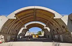 Ground was broken in 1970 to begin construction on the site and has continued at a varying pace through the present.[2] The most recently completed building was finished in 1989.[3] The population has tended to vary between 50 and 150 people, many of them students and volunteers. The goal was for Arcosanti to house a population of 5,000 people.[4] Thirteen major structures were built on the site, some several stories tall. One master plan, designed in 2001, envisioned a massive complex, called "Arcosanti 5000", that would dwarf the current buildings.