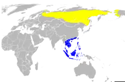 | Distribution of Arctic warbler Breeding Non-breeding