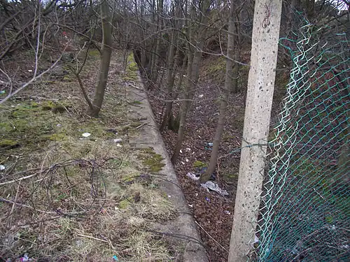 Because of the large numbers of workers using the station, a second platform had to be built on the other side of the River Garnock at the so-called 'Snodgrass branch'[4] (named after the former Snodgrass village in the area) in the 1940s.[1] Access to this platform was gained via the Glasgow to Ayr line, just north of Bogside railway station.[4] This branch is now also a small stub.