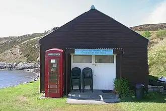 Tanera Mòr is home to a salmon fish farm, several holiday cottages, a small sailing school, a café and a post office, which has operated its own local post and printed its own stamps since 1970.[15] The island previously had no roads and the only recognisable path went around An Acarsaid ("The Anchorage"), the sheltered bay on the east side of the island. Since 2017, the redevelopment of the island has involved the creation of several roads. Tanera Mòr, like the other Summer Isles, can be seen from the Stornoway to Ullapool ferry. The island can be reached by boat from either Achiltibuie in Wester Ross, or Ullapool.
