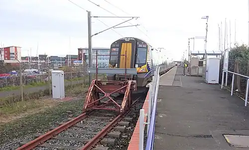 The station was originally opened on 19 January 1987 to replace the closed Ardrossan Winton Pier railway station.[3] Ardrossan Harbour station is slightly further inland (approximately 220 yards/200 metres to the east) than its predecessor[4] and is sited at the end of a 1-mile (1.6 km) long branch line from Ardrossan South Beach.