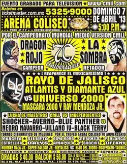 ![]() Official poster for the event promoting the main event and special appearance of Rayo de Jalisco, Jr. and Universo 2000 | |||