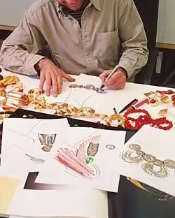 ![]() Arend Basile sketching accessories for Givenchy Haute Couture in the 1990s | |