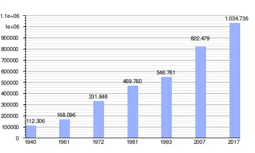| Sources: Population 1940, 1961, 1972, 1981,[6] 1993,2007[1] Population 2015[4] |