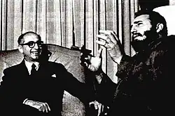 In January 1959, Cuban revolutionary leader, Fidel Castro entered Havana and took control of the country. After the revolution, Argentina maintained relations with the new Cuban government and in May 1959, Castro paid a visit to Argentina and met with Argentine President Arturo Frondizi.[2] In August 1961, Argentine born Cuban revolutionary commander, Ernesto "Che" Guevara secretly returned to Argentina for a few hours and met with President Arturo Frondizi and an aunt of his before leaving the country.[3]