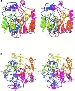 - ^ a b c d Humm A, Fritsche E, Steinbacher S, Huber R (June 1997). "Crystal structure and mechanism of human L-arginine:glycine amidinotransferase: a mitochondrial enzyme involved in creatine biosynthesis". EMBO J. 16 (12): 3373–85. doi:10.1093/emboj/16.12.3373. PMC 1169963. PMID 9218780.