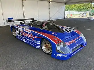 The Argo JM19, and its derivatives/evolutions, the Argo JM19C, and the Argo JM19D, are a series of IMSA GTP Lights/Group C2 sports prototype, designed, developed, and built by British constructor Argo Racing Cars, for the IMSA GT Championship, introduced in 1985.[2] Its use in sports car racing continued into the early 1990s. It won a total of 7 races, and scored a total of 21 podium finishes. It was powered by a number of different engines, including a Mazda 13B rotary engine, a Buick V6 turbo engine,[3] a Ferrari V8 engine, and even a Ford-Cosworth DFL V8 Formula One-derived engine.[4] It did, however, find most of its success when equipped with the Mazda-powered Wankel rotary engines.[5][6][7][8][9]