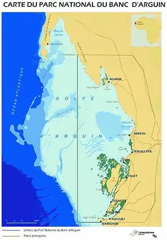 ![]() Map of the wider gulf area showing the Banc d'Arguin National Park | |