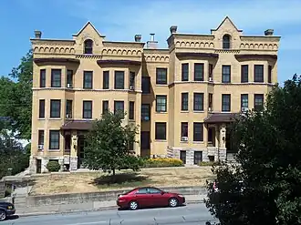 The structure was designed by the Davenport architectural firm of Clausen & Burrows and completed in 1900. It was typical of the apartment blocks that were built in Davenport near the turn of the 20th century.[2] It was advantageously located near the expanding campus of Palmer College of Chiropractic, along a streetcar line and within walking distance of the downtown area. Palmer College now owns the building.