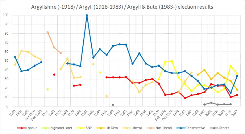 Argyll and Bute was one of the few four-way marginal constituencies in the UK. The Liberal Democrats held the seat from 1987, when they took it from the Conservatives, until 2015 when the SNP won the seat. The equivalent seat to Argyll and Bute in the Scottish Parliament was lost to the SNP in 2007, with Labour representing the overlapping constituency of Dumbarton to the southeast covering Helensburgh and Lomond. Since 2017, the Scottish Conservatives have been the main challengers in the seat.