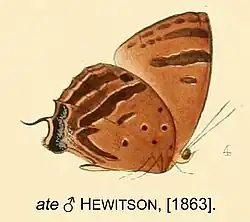 Arhopala ate is a butterfly in the family Lycaenidae. It was described by William Chapman Hewitson in 1863. It is found in the Australasian realm.[2] [3]