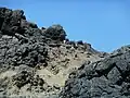 Arikok National Park features three primary geological formations, the Aruba lava formation (ALF), Aruba Batholith, and limestone terraces. The youngest formation, limestone shelves, rests atop the second-oldest, the Batholith. The oldest, the ALF, is not visible. Magma rose, cutting through formations and solidifying into quartz veins. These veins are younger than the surrounding formations. The magma brought up minerals, including gold. Veins vary from a single centimeter to over a meter in width. These quartz veins were mined for their gold content. More than 20 veins were mined, with the Miralamar mine being particularly notable.[9][10]