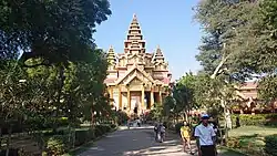 Arimadanapura Palace (Burmese: အရိမဒ္ဒနပူရ နန်းတော်), also called the Bagan Golden Palace, is a royal palace in Bagan, Myanmar.[1] The palace was originally built by King Anawrahta during the Pagan Dynasty. The palace's excavation site is located on the southern side of Bagan-Nyaung Oo Road. Between 1989 and 2003, it underwent excavation with government approval. Subsequently, in 2003, the palace was meticulously reconstructed, drawing design inspiration from remnants of mural art found in ancient Pagan temples. The restoration project was successfully completed in 2007, and it has since become a major tourist attraction.[2]