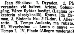 - Tawaststjerna, Erik (2008c) [1978/1988; trans. 1997]. Sibelius: Volume III, 1914–1957. Translated by Layton, Robert. London: Faber and Faber. ISBN 978-0-571-24774-5.