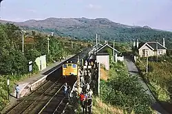 A camping coach was also positioned here by the Scottish Region from 1952 to 1960, the coach was replaced in 1961 by a Pullman camping coach which was joined by another Pullman in 1966. From 1967 to 1969 there were 2 standard camping coaches here, all camping coaches in the region were withdrawn at the end of the 1969 season.[8]