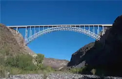 The Arizona Highway Department renewed and modified its earlier extension proposal of US 93 on April 30, 1965. The modified proposal stated the US 93 extension was to take over all of SR 93 between Nogales and Kingman, rather than just the route between Kingman and Wickenburg. During this time, the Burro Creek Bridge had begun construction. The U.S. Route Numbering Committee of the AASHO considered this action on June 28, 1965, but the idea was ultimately denied. According to the AASHO, the route was substandard in many areas, didn't carry nearly enough traffic to justify U.S. Highway status and part of the road had yet to be completed to Wickenburg. Part of the proposal was reconsidered on June 28, 1965, approving an extension of US 93 between Kingman and Wickenburg under the condition that substandard areas of the road were improved quickly.[4] With the extension of US 93, the SR 93 designation was retired north of Wickenburg, but continued to exist between Wickenburg and Nogales. Over time, the route of SR 93 was modernized, being joined by Interstate 10 and Interstate 19. Part of SR 93 between Chandler and Casa Grande was abandoned in 1972 and the route was re-routed onto I-10.[2][14] In 1984, SR 93 was truncated south of its junction with I-10 BL / SR 85 (Van Buren Street), at the intersection of Grand Avenue and 7th Avenue in Phoenix.[5] The SR 93 designation was finally retired on August 16, 1991.[3]