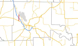 Highway 104 begins at US 270 and runs due north as a section line road to an interchange with I-530/US 65. North of this interchange the route has a junction with Highway 365, where it terminates. This northern terminus is at the edge of the Pine Bluff Arsenal.[2]