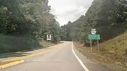 Highway 110 begins at Highway 16/Highway 92 in Greers Ferry in western Cleburne County. The highway runs southeast through an undeveloped part of the small town to Shiloh Park on Greers Ferry Lake.[4] State maintenance ends at the shore of the lake, where the highway formerly continued south to Heber Springs prior to the damming of the Little Red River in 1962.