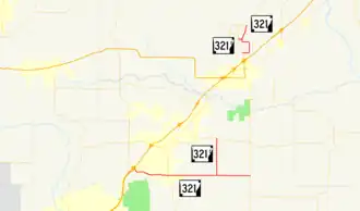 Highway 321 (AR 321, Ark. 321, Hwy. 321) is a designation for two north–south state highways in central Arkansas. One route of 11.20 miles (18.02 km) runs from Interstate 57 (I-57) in Cabot north to Highway 38 east of Austin.[2] A second route of 3.79 miles (6.10 km) begins at AR 31 north of Beebe and runs north to Highway 267.[3]