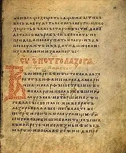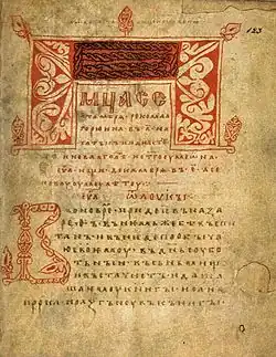 The Arkhangelsk Gospel (also called Archangel Gospel; Russian: Архангельское Евангелие) is a lectionary written in Old Church Slavonic dated to 1092. It is the fourth oldest Eastern Slavic manuscript.[1] The book is stored in the collection of the Russian State Library. UNESCO added the Arkhangelsk Gospel to the international register Memory of the World Programme in 1997.[2]