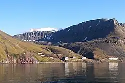 By the end of the war the settlement in Pyramiden was still standing.[26] Barentsburg and Kapp Heer were destroyed and full reconstruction of the town was necessary. Grumant was in the same situation. The only structure that was usable was a water tower. Although an inspection was carried out in 1945,[27] Arktikugol did not commence reconstruction until November 1946. It stationed an ice-breaker in Pyramiden to keep an ice-free path between the two towns. By the summer of 1947 there were 350 people working in Pyramiden, although mining had yet to commence. By November the populations had reached 500 in Pyramiden and Barentsburg, and 200 in Grumant.[28] Barentsburg and Grumant were sufficiently rebuilt by 1948 to allow mining to commence.[29] Prospecting was carried out in Colesbukta and by 1949 there were 2,438 Soviet citizens on the archipelago, of which 51 were children. Barentsburg had 1,180 people, Grumant 965 and Pyramiden 293.[30]