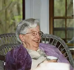 After leaving her job at St. Elizabeth's in 1981, she returned to Minnesota to enter the Sisters of St. Benedict in St. Joseph, Minnesota, just a few miles from St. John's and Collegeville. She professed first vows on the Feast of St. Benedict, July 11, 1981, almost 10 years to the date since her husband's death, and perpetual vows on the same date in 1985.[30] For two decades she was a staffer and occasional instructor in the monastery Spirituality Center. She worked with battered women at a shelter, and with seniors and jail inmates. She is buried at St. Benedict's Monastery in Minnesota.[31] A short feature about the creation of this Wikipedia article via Women in Red and about her life appeared in the Spring 2024 edition of Benedictine Sisters and Friends magazine.[32]