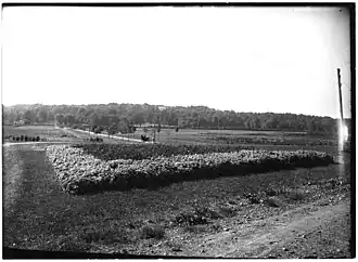 Arlington Experimental Farm was a former federal agricultural research farm in Alexandria, Virginia that opened in 1900.[1] It was established by an Act of Congress, moving the Department of Agriculture's main research from the National Mall to Arlington.[2][3] It grew hemp beginning in 1903 (under the cultivation of Lyster Dewey[1]), or 1914.[4] In 1928, it was the largest United States Department of Agriculture experiment station in the Washington, D.C. area.[5] USDA researcher Vera Charles also worked at the station, collecting Cannabis seeds from across America and studying pests and pathogens that could diminish hemp crop productivity.[6] Cultivars developed at Arlington include Arlington, Chington, Ferramington, Kymington and Arlington; Chington and Kymington[a] were adopted "extensively" by seed farmers producing hemp in Kentucky.[9] The seeds were probably destroyed by the government in the 1980s.[10]