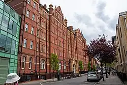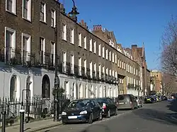 Arlington House, a Rowton House hostel for working men, was built in 1905. It was refurbished in 1983 and 2008, is the only Rowton House to remain in its original use, and was Grade II listed in 2011.[6] The Roman Catholic Church of Our Lady of Hal was opened in 1933. Notable residents of the street have included the musician Samuel Wesley[3] and the songwriter Charles Dibdin, who died there in 1814.[7]