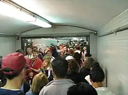 After delays caused by World War I, Arlington station finally opened in 1921.[1][5] Escalators from the platforms to the lobby were added in 1951 – the westbound on June 11, the eastbound on November 7.[6] With the platforms 55 steps below ground, Arlington had been the deepest station on the system without escalators.[7]