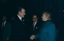 In 1986 and 1990, she won the Republican primary for governor. In 1986, her campaign used the slogan "Let's Just Call Her Governor", owing to her hard-to-read surname.[6] In the election, she lost to Democrat Steve Cowper 47.3-42.6. In 1990, her running mate Jack Coghill defected to the third party candidate Walter J. Hickel. Sturgulewski went on to come in third place behind former governor Wally Hickel and Democrat Tony Knowles. There was opposition within the Republican party to her abortion rights and development positions.[7] By 2016, she had registered nonpartisan, as the Republican party had moved, "too far to the right."[8] In 2019, Sturgulewski co-chaired a committee that attempted to recall Republican Governor Mike Dunleavy.[9]