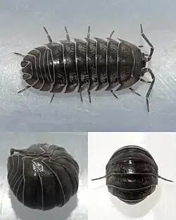 | Armadillidium nasatum, in standard posture (above) and conglobated (below) | |