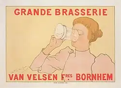 Rassenfosse has often been linked with Felicien Rops as a follower. This is perhaps unfair. One author has said, for example, that while Rops portrayed courtesans, Rassenfosse depicted the daughters of working people. In his intimate nude studies the women have natural elegance, but are not purely objects of desire, as Rops would have made them.[8] However, talking of Rassenfosse's earlier work another writer said that in his advertisements he and others of the time "exploited the image of the sensuous, beautiful young woman ... in a serenely dreamy state ... the stylised embodiment of temptation..."[9]