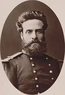 On 8 December 1874, he married Eva Guignard (1853–1948), daughter of a wine merchant, in Sainte-Foy-la-Grande. In 1875, on a reconnaissance mission in the Baltic Sea, he was arrested by the Germany and spent five months in prison for having drawn coastal fortresses without authorization.[10] Expelled to France, he was then assigned to the office of the Minister of the Navy.[11] The same year, he became a member of the Paris Geographic Society,[12] sponsored by his brother Onésime.[13] His only daughter Jeanne (1875–1940) was born on October 8.[14]