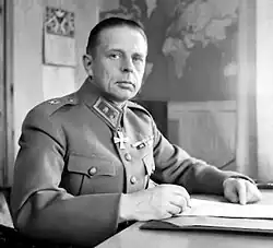 At the onset of the Winter War, Martola was made the chief of staff of kotijoukot (home front, lit. home forces).[1] Subordinated to both the Finnish General HQ and the Ministry of Defence, this command was tasked with organizing the replacement of casualties, the founding and training of new units and securing the home front areas.[3] Towards the end of the war, in early 1940, he was given command of the 1st Division on the Karelian Isthmus, but returned to his posting as the chief of staff of home forces after the end of the war, later in 1940. He was promoted to the rank of general major in 1941.[1]