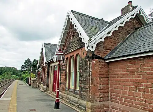 Armathwaite is a railway station on the Settle and Carlisle Line, which runs between Carlisle and Leeds via Settle. The station, situated 9 miles 75 chains (16 km) south-east of Carlisle, serves the village of Armathwaite, in Cumbria, England. It is owned by Network Rail and managed by Northern Trains.