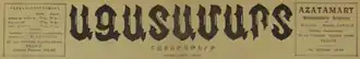 | Azatamart[17][12] (by Shahan Natalie) | Ազատամարտ | "Free Struggle" | Weekly | 1928-1929 | Paris | |