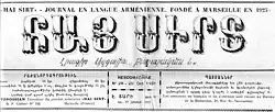| Hai Sirt | Հայ Սիրտ | "Armenian Heart" | Newspaper | 1925-1938 | Marseille | ![]() |