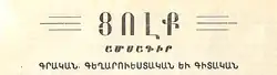 | Tzolk (notably by Vahram Gakavian)[11][10] | Ցոլք | "Reflection" | Literary magazine | 1928 | Paris | ![]() |